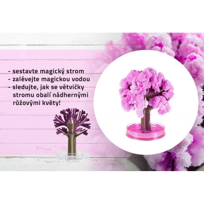 Chcete oživit váš interiér a hledáte i zároveň něco kreativního? Pak pro vás máme tento magický strom, který si můžete sami vypěstovat! Stačí ho pouze zalít magickou vodou, kterou dostanete také v balení, a pak už jen sledujete, jak se strom postupně mění a jak se obaluje krásnými růžovými květy.