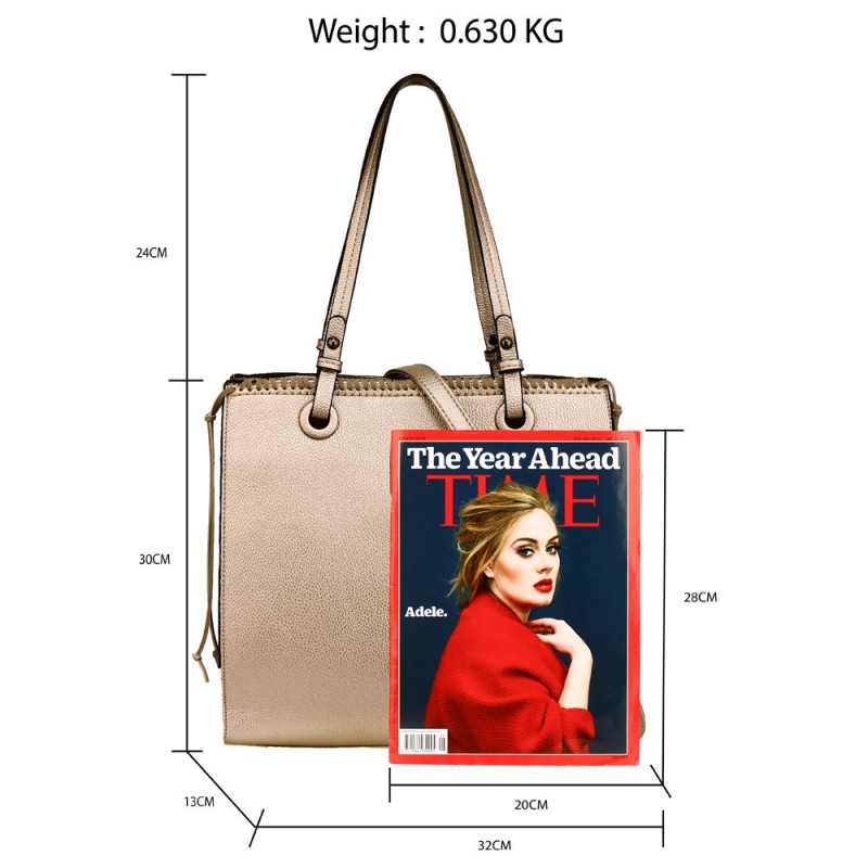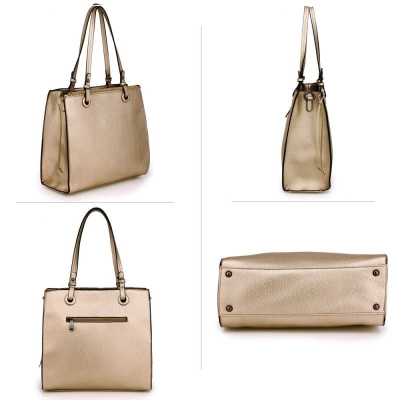 Luxusní, elegantní, s důrazem na kvalitu. Taková je kolekce kabelek od společnosti Anna Grace sídlící v samotné metropoli módy - Londýně! Tato parádní kabelka z vysoce kvalitní eko kůže ve zlaté barvě má střední velikost, zapíná se na magnet a zip, je prostorná a vybavená odnímatelným popruhem. Její rozměry jsou (š x v x h) 32 x 30 x 13 cm a ramínko je vysoké 31 cm. Dopřejte si skvělou módu i vy!