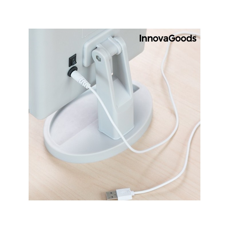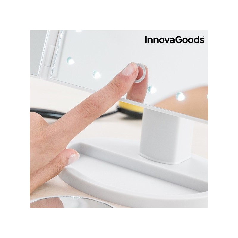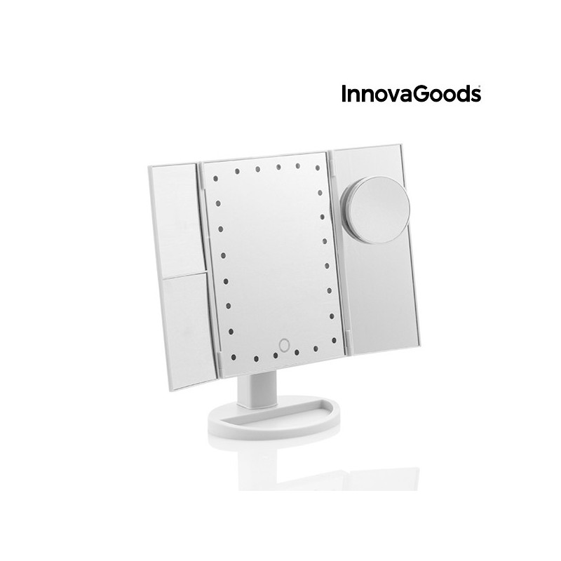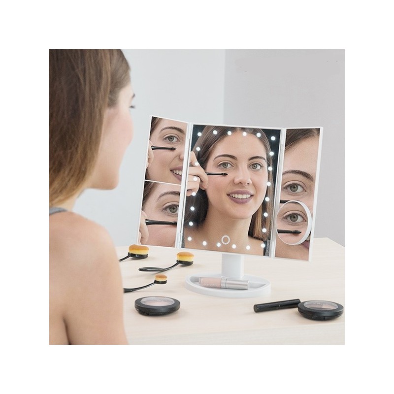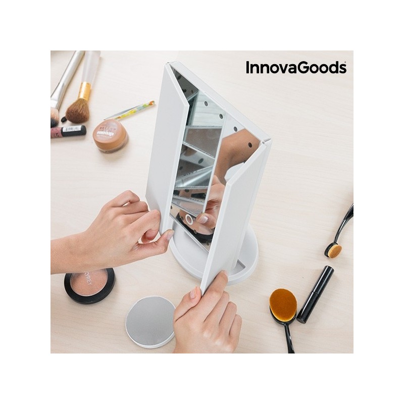 Praktické a pohodlné stolní zrcadlo vhodné např. na líčení a jiné úpravy zevnějšku. Vyrobené z ABS v moderním a funkčním designu. Zrcadlo je skládací a obsahuje celkem 24 bílých LED diod, navíc jej můžete otáčet o 360° a disponuje zónami s různým zvětšením.