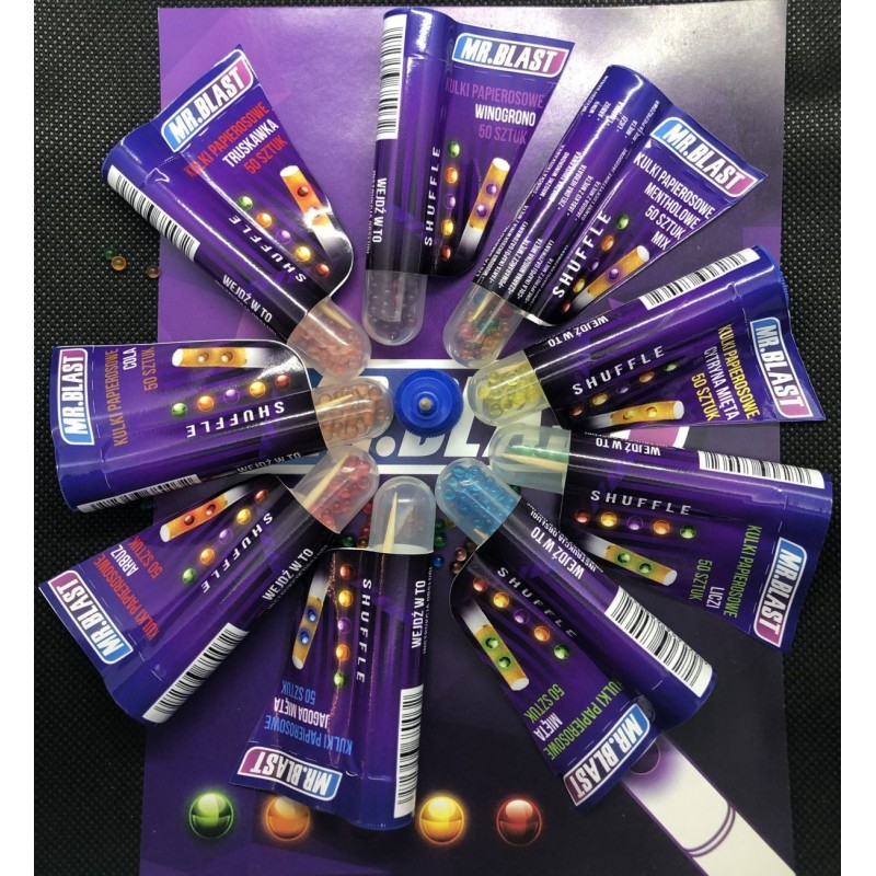 Značka Mr. Blast distribuuje vysoce kvalitní praskací kuličky se širokou paletou příchutí, od ovocných, přes příchutě nápojů, až po prémiové. Kuličky jsou určeny milovníkům ovocných a svěžích chutí, kterým byla na základě směrnice EU odepřena možnost nákupu ochucených praskaček.