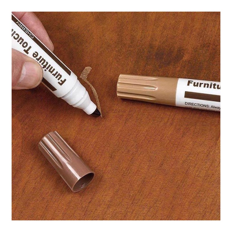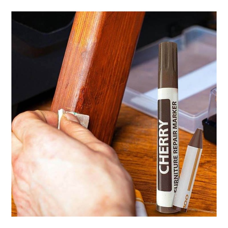 Sada obsahuje fixy a vosky v různých barvách. Fix zakryje viditelné rýhy, zatímco vosk vyplní mezeru a zabarví ji. Skvělý způsob, jak rychle a levně zrenovovat poškozený nábytek.