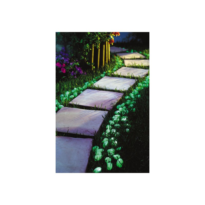 Tyto ozdobné svítící oblázky se během dne nabíjejí působením solární energie a v noci pak vyzařují měkké zelené světlo. Jsou vhodné pro venkovní i vnitřní použití - můžete je tedy použít doma jako dekoraci do vázy či květináče, ale také jimi rozzářit oblíbený kout vaší zahrady či terasy.
