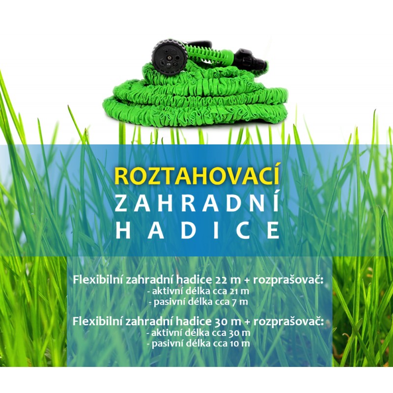 Speciální kombinace extrémně pružné latexové hadice spolu s kvalitní a vysoce odolnou textilií zaručuje rozvinutí hadice z původních 10 metrů až na 30 metrů. Oproti ostatním hadicím je extrémně lehká, unese jí i dítě.